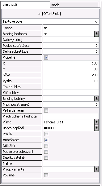 Binding hodnota - Atribut, jehož hodnotu bude toto pole obsahovat.