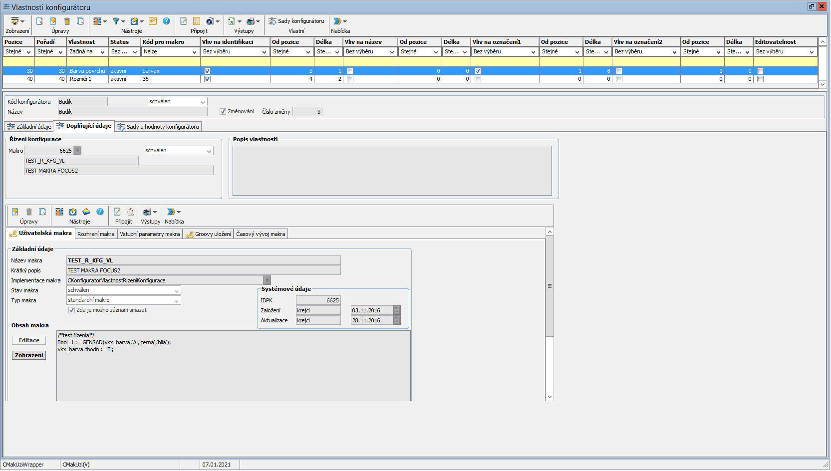 Vlastnosti konfigurátoru