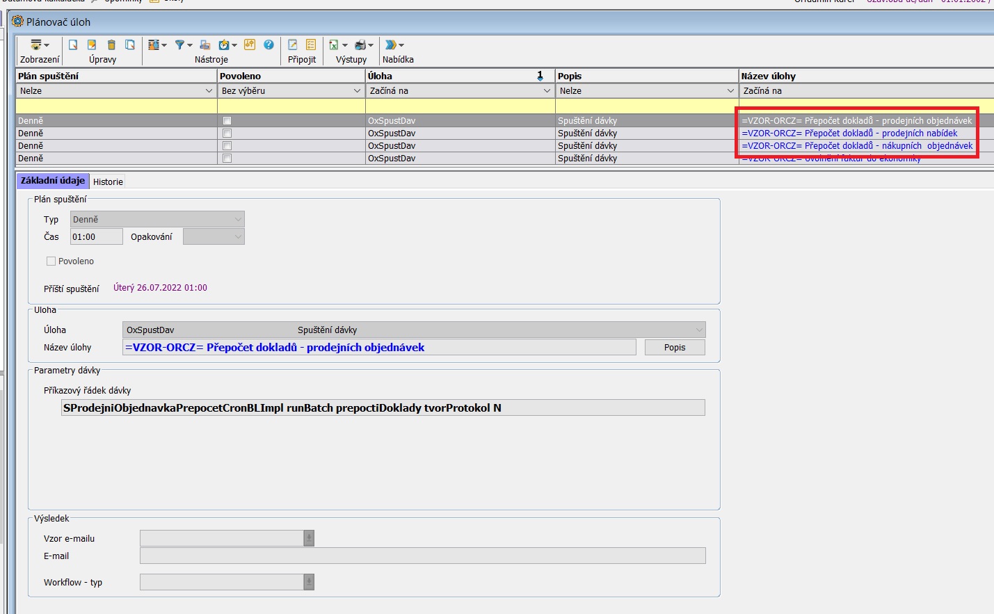 Přepočet obchodních dokladů pomocí Plánovače úloh