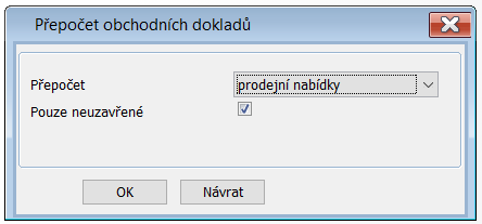 Vždy s variantou přepočítat všechny doklady nebo jen neuzavřené doklady.