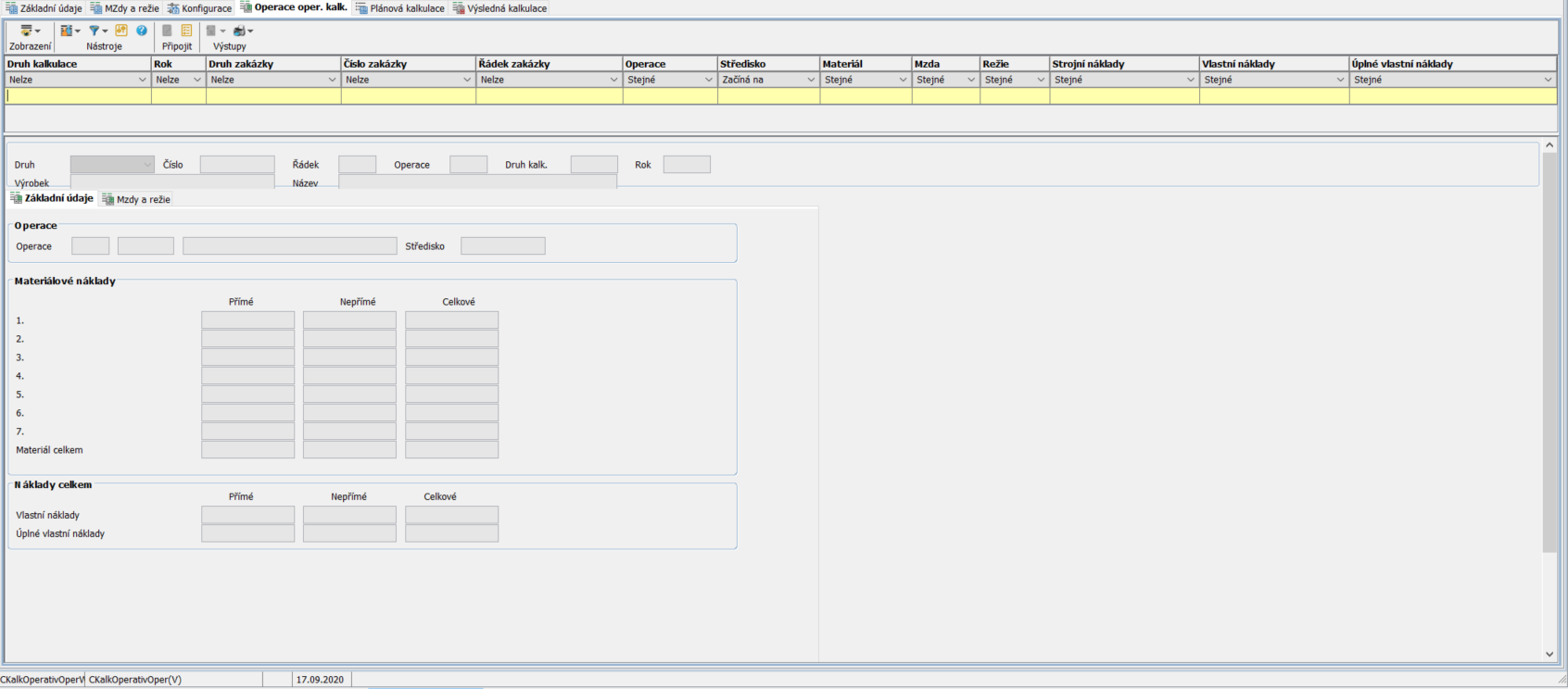 Další vlastností jsou Operace operativních kalkulací, tedy jednotlivé operace vstupující do dané operativní kalkulace.