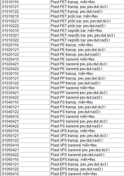 - podle tohoto členění se pak obalové materiály tisknou na výkaz EKOKOM