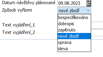 V záložce evidujeme informace jako datum skutečné návštěvy dodavatele (zpravidla se provádí z důvodu ověření neshody a jejího rozsahu), termín případného vrácení zboží.