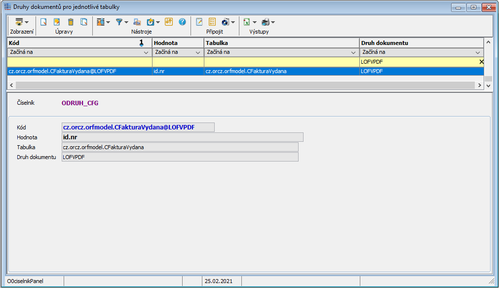- Je potřeba doplnit přiřazení druhu dokladu „LOFVARC“ k tabulce