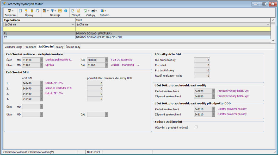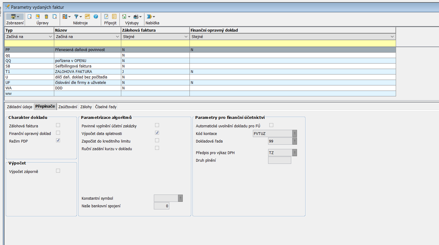 - Typ dokladu - Udává typ faktury pro kterou je tento parametr platný.