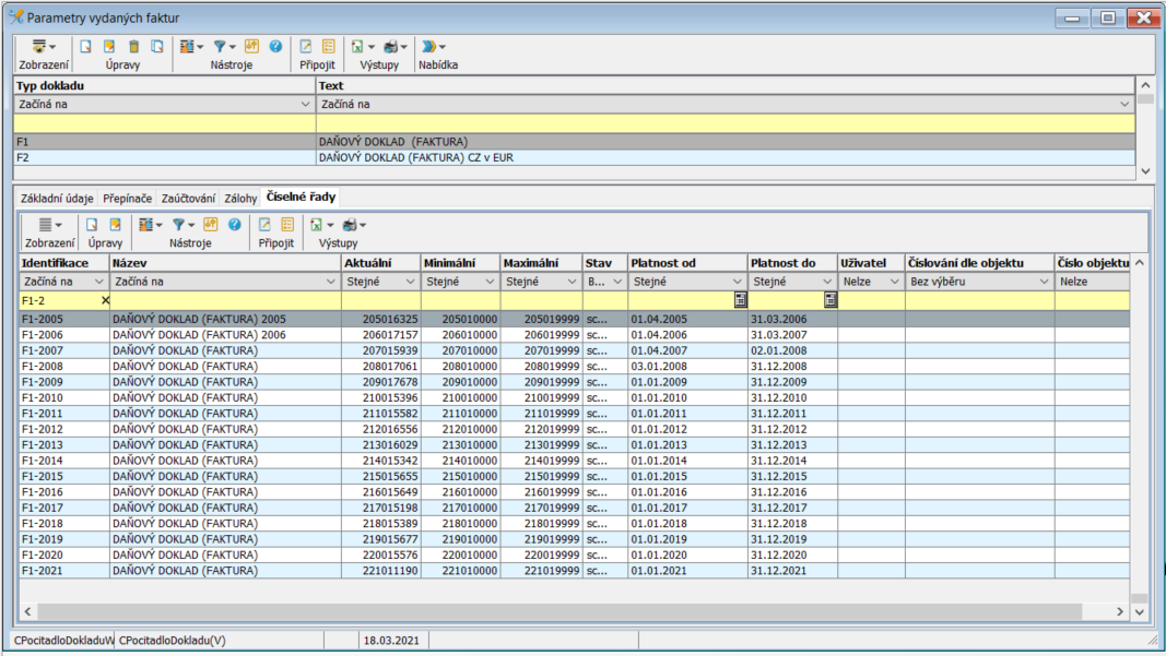 - Souvislá číselná řada - definuje to , že řada dokladů musí být souvislá bez mezer