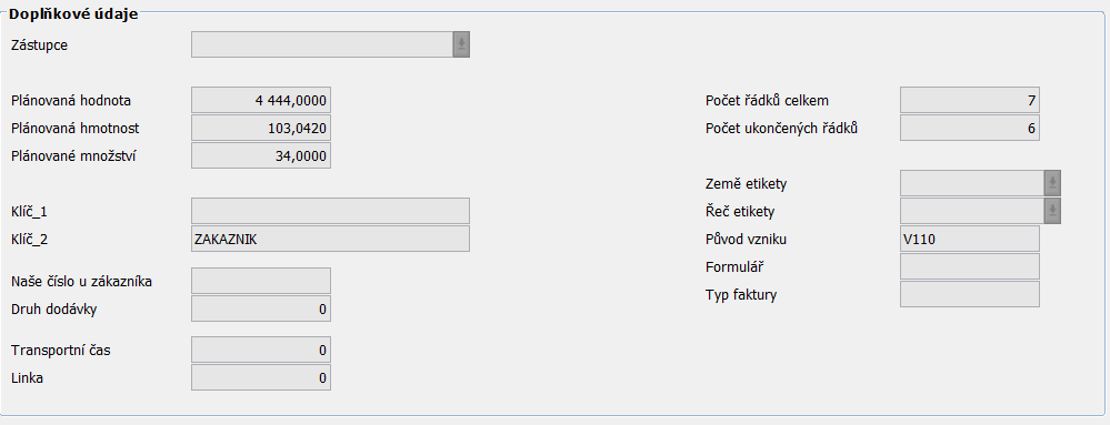 Každá zakázka (řádek tabulky) obsahuje základní údaje, které slouží ke specifikaci prodejní objednávky. Mezi tyto údaje patří odběratel, logistika, časové údaje o zakázce, bankovní spojení odběratele, podmínky dodávky, měna ve které se obchoduje, stav dokladu a další potřebné údaje.