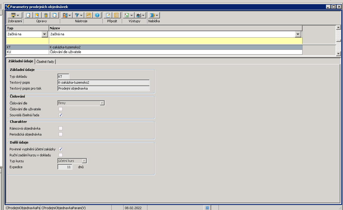 - Základní údaje - Udává typ dokladu a textový popis (název) dokladu (objednávky).