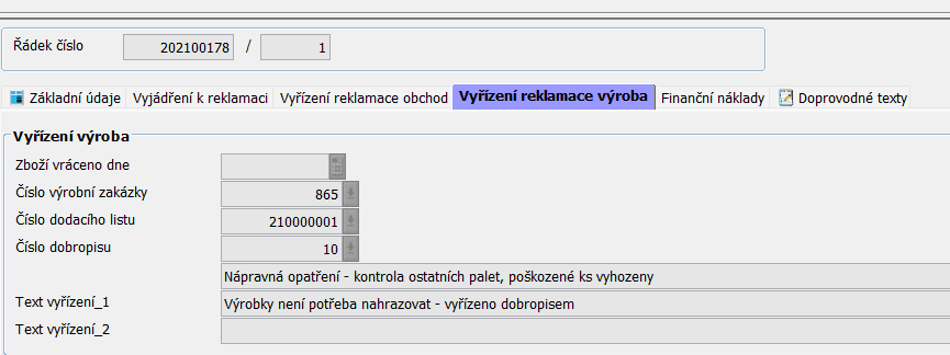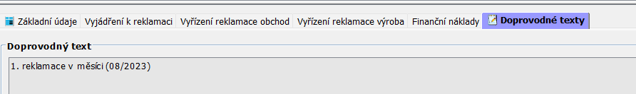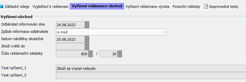 Záložka náležící obchodnímu oddělení. V atributu Číslo reklamační zakázky se pomocí prokliku