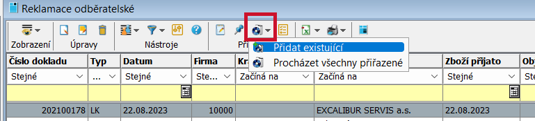 , přes který se dostaneme na seznam příslušných obchodních dokladů.