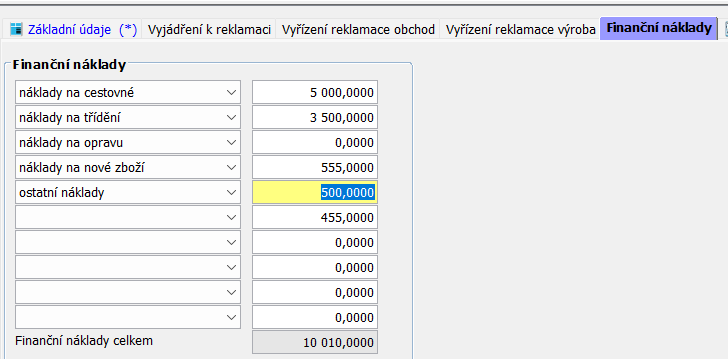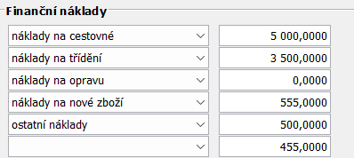 Atributy v záložce Finanční náklady budou automaticky propsány z atributů v řádku.