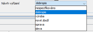 V této záložce se vyplní atributy k posouzení přijaté reklamace. Tyto údaje jsou v kompetenci oddělení kvality.