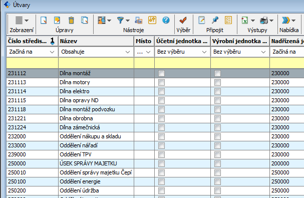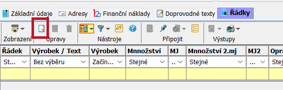 Řádek vytvoříme pomocí tlačítka Nový záznam