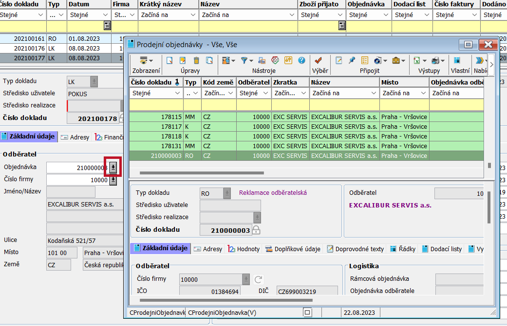 dostaneme na seznam prodejních objednávek.