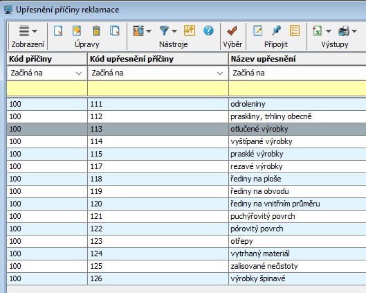 Vyplníme další atributy jako např. Množství, případně Reklamovanou výrobní zakázku, ze které reklamovaný výrobek pochází a následně pole, která se týkají samotné neshody/vady výrobku, která je předmětem reklamace.