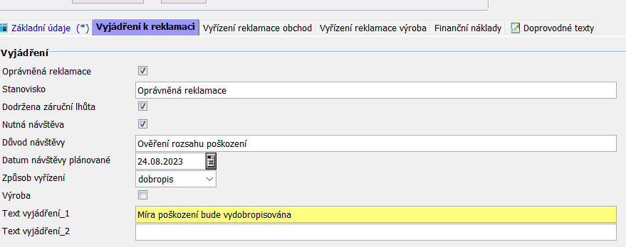 Vyjádření k reklamaci