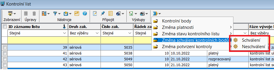 použít, se týkají změny schvalování vybraných kontrolních bodů a změny stavu kontroly.
