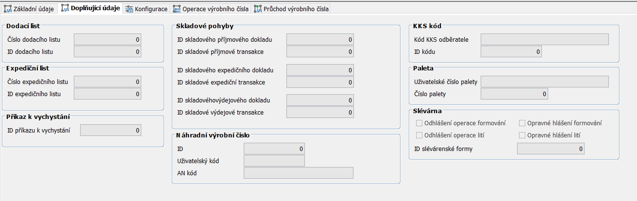 Ke každému záznamu (výrobnímu číslu) lze přidat i doplňující údaje.