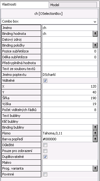 - Binding hodnota - Atribut, jehož hodnotu bude toto pole obsahovat.