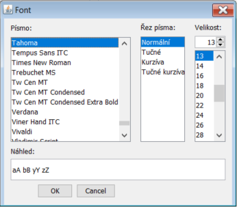 - Písmo - Určuje font a velikost písma.