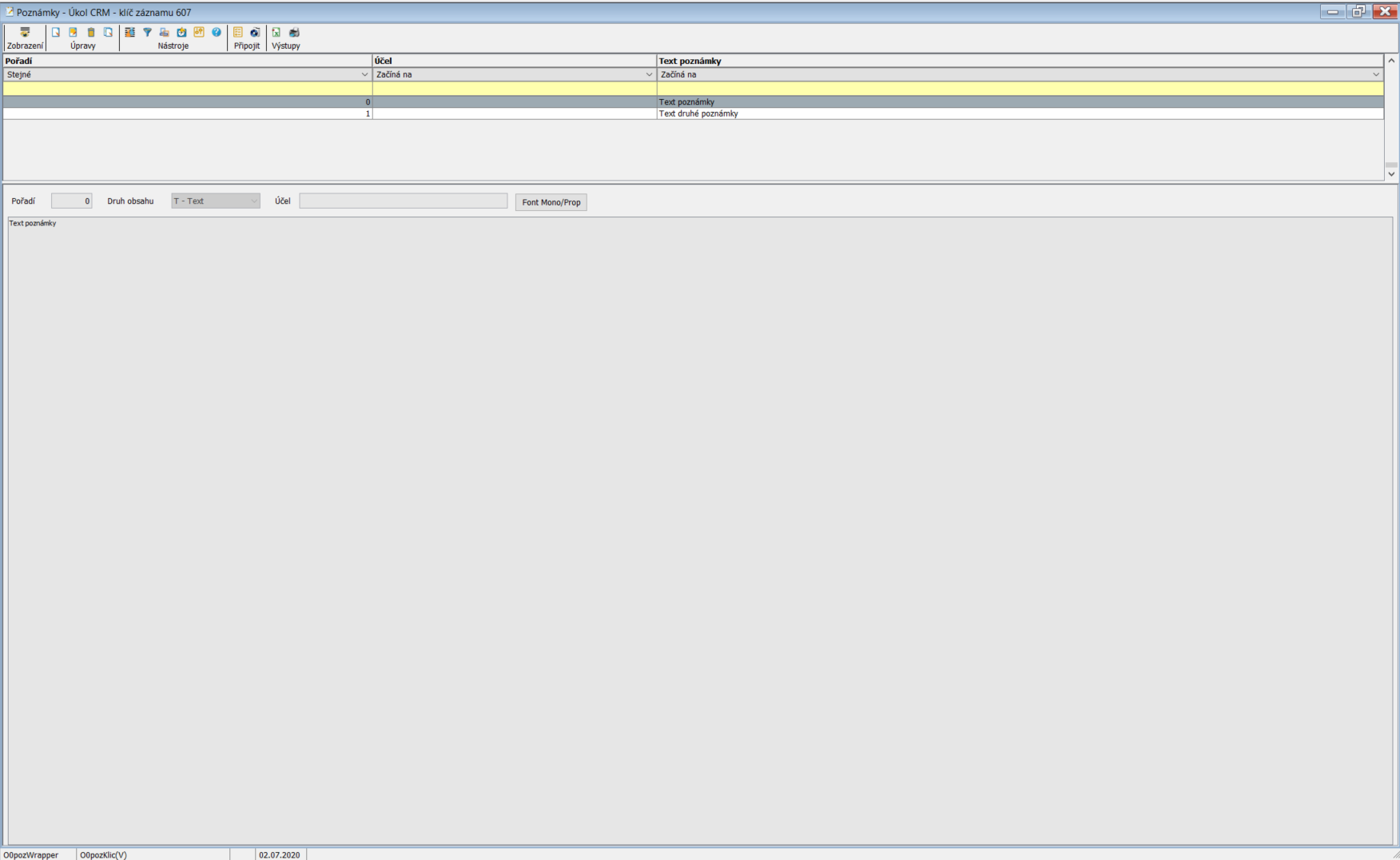 - Detail - Zobrazení detailu vybraného záznamu (zobrazení okna se všemi informacemi týkající se vybraného záznamu).