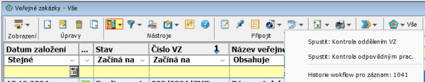 Odpovědná osoba, nebo referent může odeslat pomocí workflow veřejnou zakázku ke kontrole:
