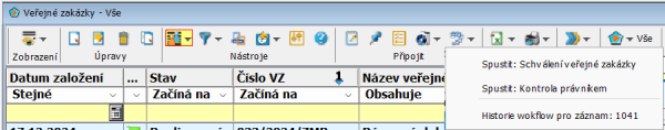 Veřejná zakázka přechází po schválení ve workflow do stavu