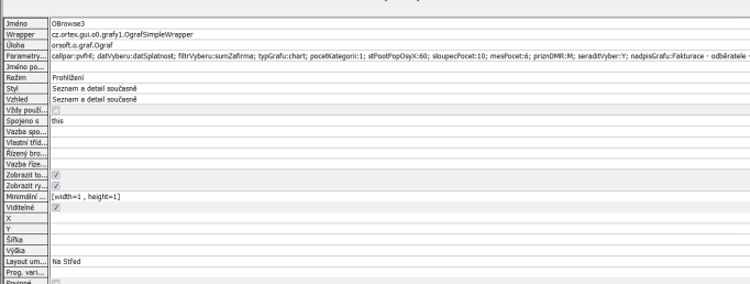 Parametry wrapper - např. callpar:pvfHl; datVyberu:datSplatnost; filtrVyberu:sumZafirma; typGrafu:chart; pocetKategorii:1; stPootPopOsyX:60; sloupecPocet:10; mesPocet:6; priznDMR:M; seraditVyber:Y; nadpisGrafu:Fakturace - odběratele - 9 podle velikosti + ostatní; zobrHodnVrchGraf:A; dataInterface:cz.ortex.impldao.p0.grafy.PgrafPodavac