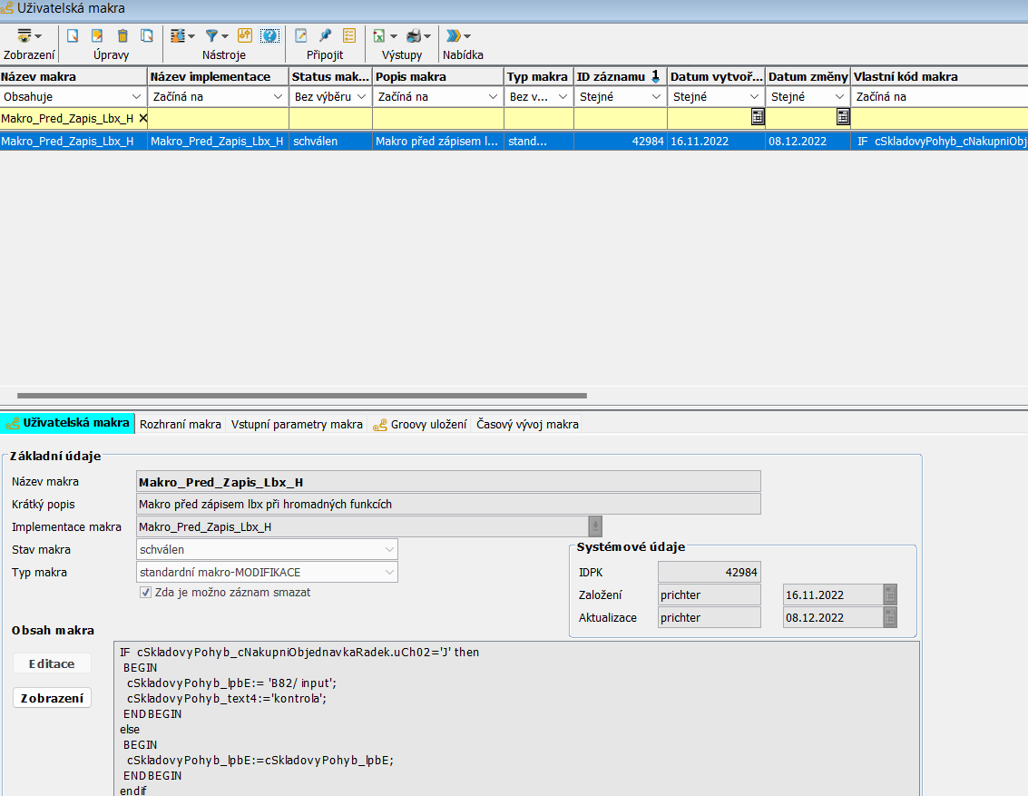Při každém zápisu ( funkce Zpracovat záznamy) lbx se makro automaticky zavolá a upraví upravené atributy dle předchozího nastavení zákazníka.