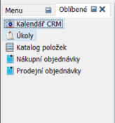 Horní záložka Oblíbené obsahuje seznam oblíbených úloh systému. Uživatel si může dle své potřeby přidávat libovolné úlohy z MENU a sestavit si svůj seznam programů, který mu ulehčí práci, místo hledání vybraných úloh mezi záložkami a složkami menu.