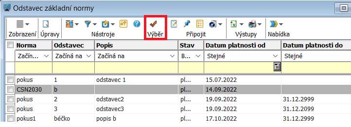 i Odstavec základní normy z existujícího seznamu a potvrdíme tlačítkem Výběr