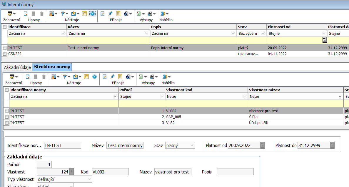 Struktura normy - seznam vlastností, přiřazených k dané interní normě.