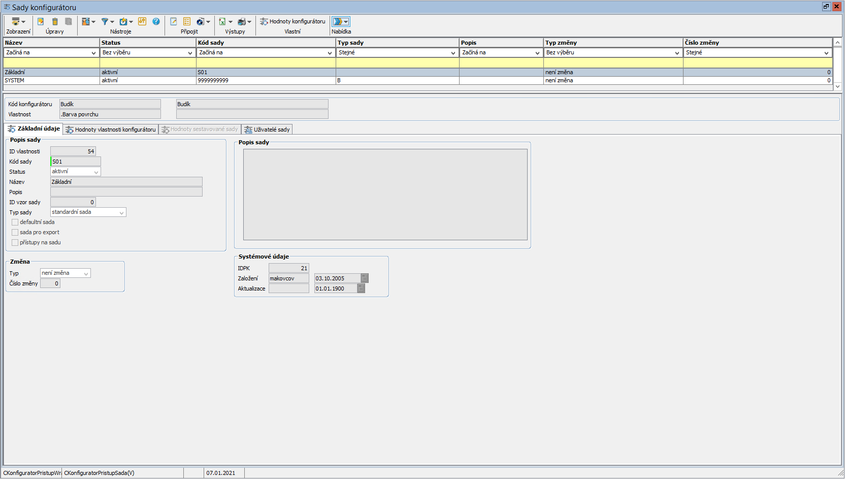 Jestliže se k některé vlastnosti dodatečně doplní sada nebo k sadě hodnota je nutné provést toto doplnění i v konfigurátoru. Doplnění je možné provést u vlastnosti konfigurátoru funkcemi přidání sady nebo doplnění hodnot. Přidat lze jedině sady (nebo hodnoty), které jsou pro konkrétní vlastnost založeny.