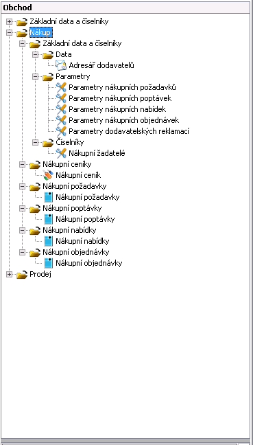 Modul Nákup je složen z těchto oblastí: