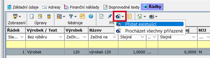 Řádek reklamace umožňuje vytvářet a editovat jednotlivé řádky vázané k dané reklamaci. Řádek odběratelské reklamace obsahuje tyto záložky: