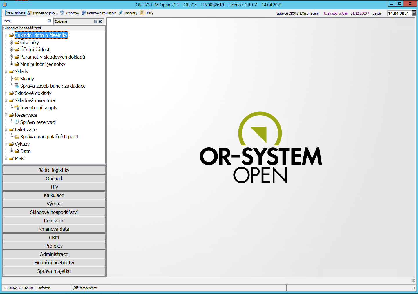 Modul Skladové hospodářství v OR-SYSTEM Open slouží pro správu veškerých úloh v oblasti skladů. Jednotlivé úlohy jsou interně propojeny z účetními programy systému pomocí systémových vazeb.