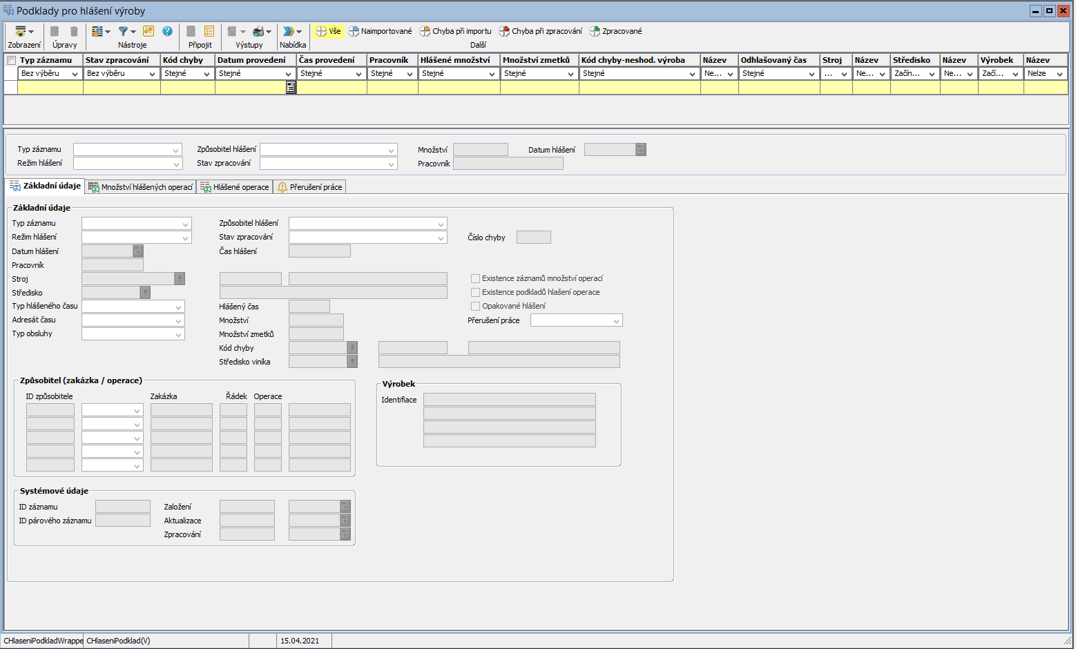 - Filtr pouze záznamů s chybou při importu (atribut Statut = 3).