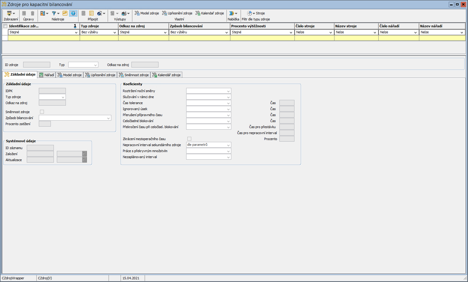 Zdroje pro kapacitní bilancování